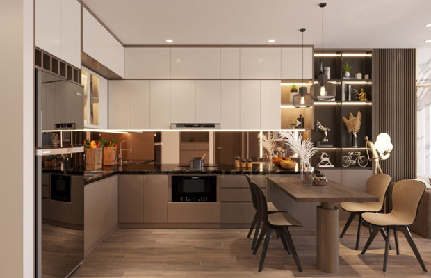 Phòng bếp theo kiểu chữ L được lựa chọn phổ biến nhất hiện nay.