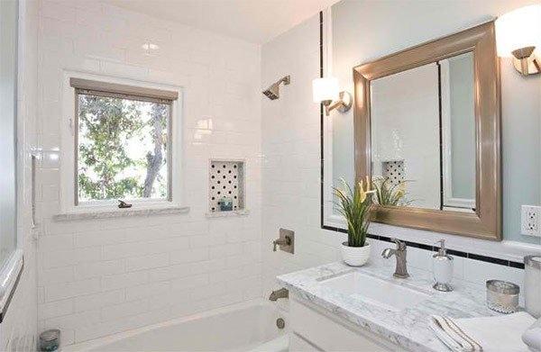 Nên đặt hướng cửa sổ ở gần với không gian tắm. Đặt thêm gương và đèn trong phòng vệ sinh để thuận tiện trong quá trình sử dụng. Bạn có thể trang trí thêm chậu nhỏ để tạo điểm nhấn nữa.