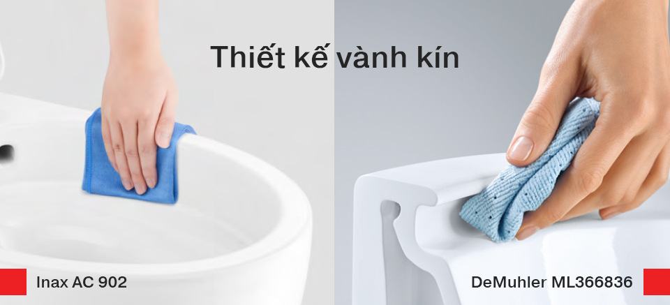 Cả hai sản phẩm đều được thiết kế vành kín, không góc khuất, giúp dễ dàng trong quá trình vệ sinh đồng thời loại bỏ nơi trú ngụ và phát triển của vi khuẩn, giúp bảo vệ sức khỏe cho cả gia đình.