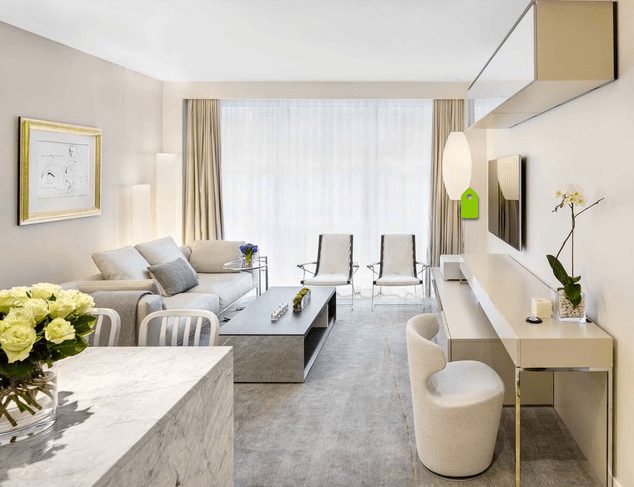 Một trong những ý tưởng phòng khách nhỏ phổ biến nhất là sử dụng các màu trung tính trên tường, sàn, trần và đồ nội thất bọc.