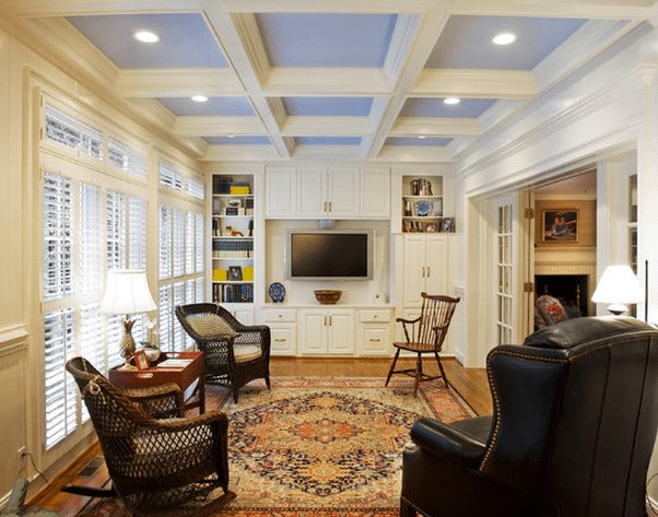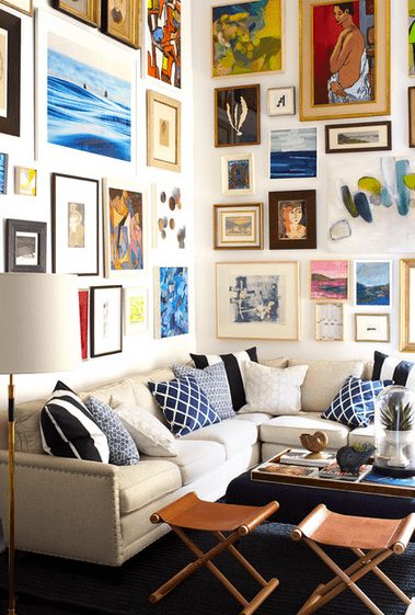 Nếu phòng khách của bạn có trần nhà cao, hãy tận dụng tối đa không gian thêm bằng cách trang trí nó theo cách thu hút mắt hướng lên trên.