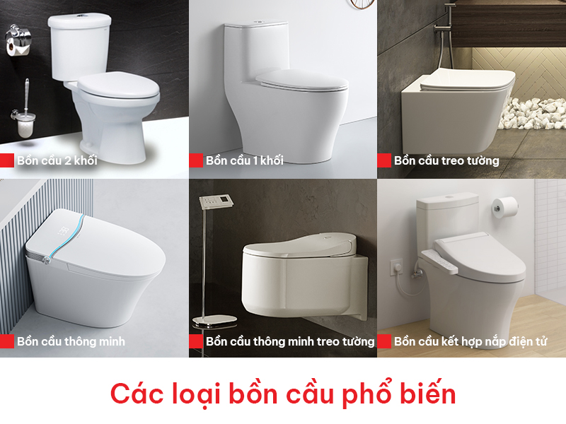 Trước hết, hãy xác định loại bồn cầu mà bạn muốn sở hữu. Có nhiều loại bồn cầu khác nhau như: Bồn cầu 1 khối, bồn cầu 2 khối, bồn cầu treo tường, bồn cầu thông minh…. Hiểu rõ về từng loại sẽ giúp bạn chọn được sản phẩm phù hợp với phong cách và không gian của phòng tắm.