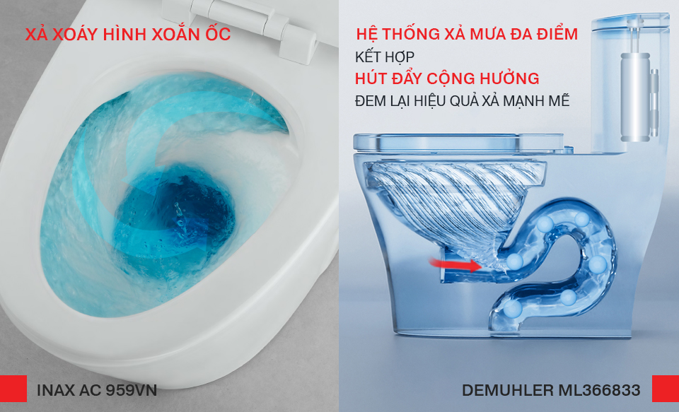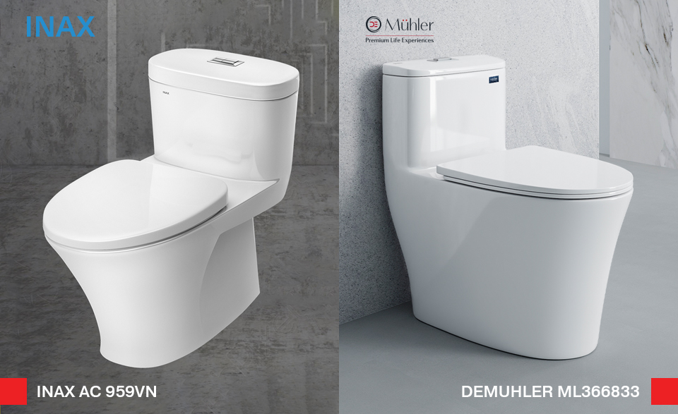 Trong phân khúc giá 5-6 triệu, hai siêu phẩm bồn cầu Inax AC 959VN và DeMuhler ML366833 đang thu hút sự chú ý của người tiêu dùng. Dưới đây là bài đánh giá chi tiết so sánh 2 loại sản phẩm này để giúp độc giả có những lựa chọn hợp lý nhất khi chọn mua bồn cầu cũng như các TBVS khác của hãng.